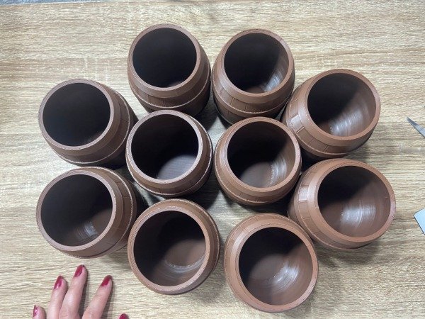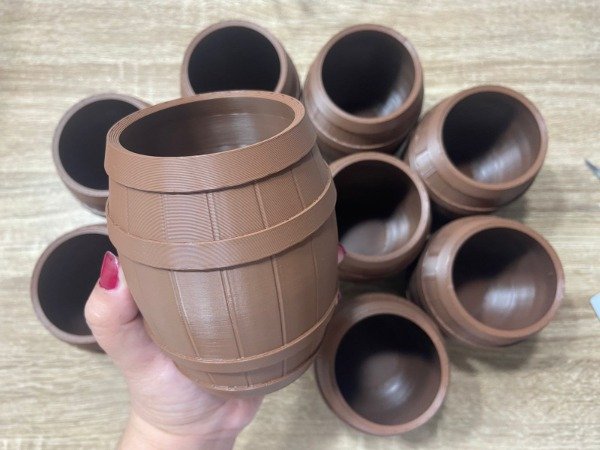 El tamaño del barril es de 10cm de alto y aprox 8cm de ancho. En estas fotos se intenta comparar el modelo de 6cm con el de 10cm.