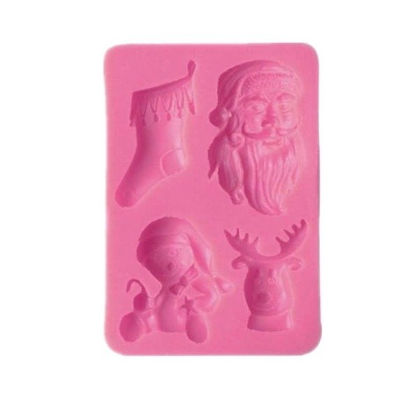 Set navideño con Papá Noel (3x5cm), Bota (2x4,5cm), Reno (2,5x3cm) y muñeco navideño (3,5x4cm). Ideal para deco de tortas o imanes. APTO PARA: Fondant, chocolate, resina y porcelana. CUIDADOS: Lavar con jabón neutro.