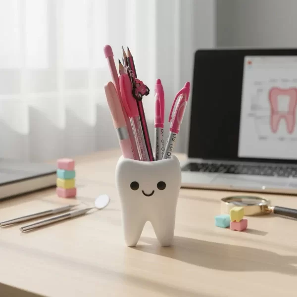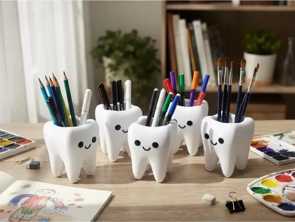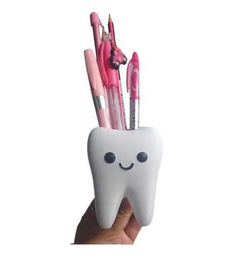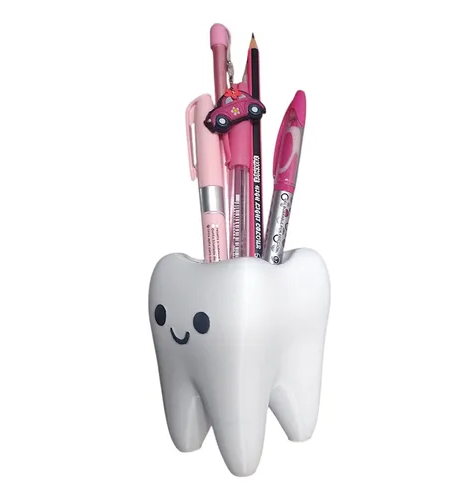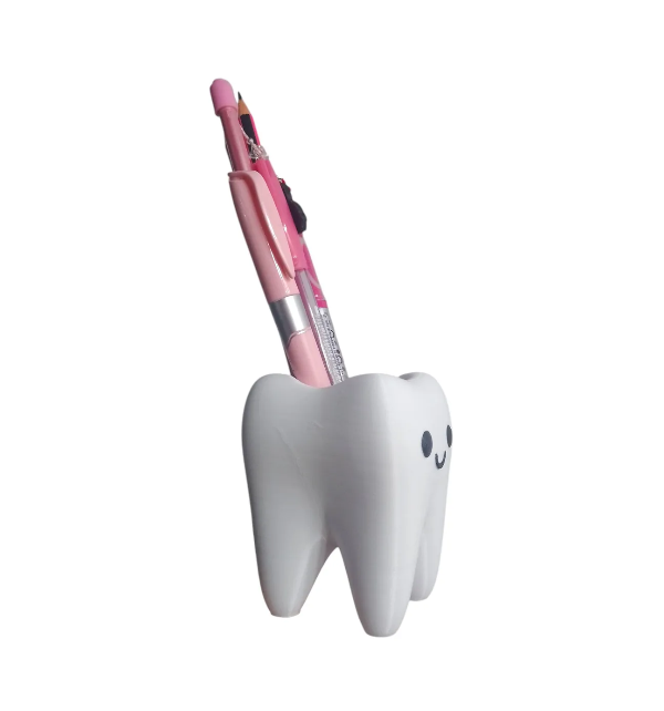 Porta lápices en forma de muelita kawaii. Impreso en 3D.